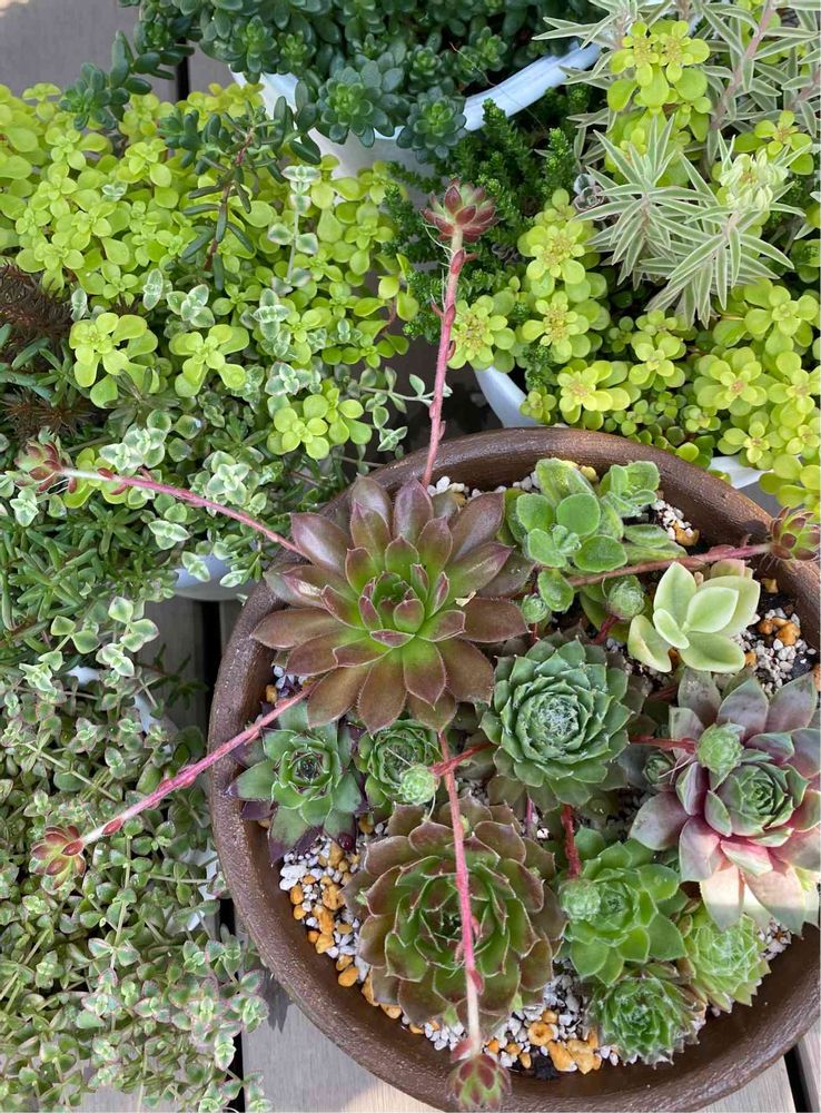 センペルビウムの子供?🤔が伸びてきました🤭💕元気なセダムと一緒に📸✨