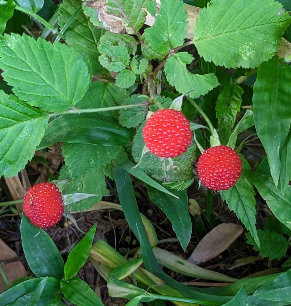 赤くて美味しそうなクサイチゴの実を見つけました。
