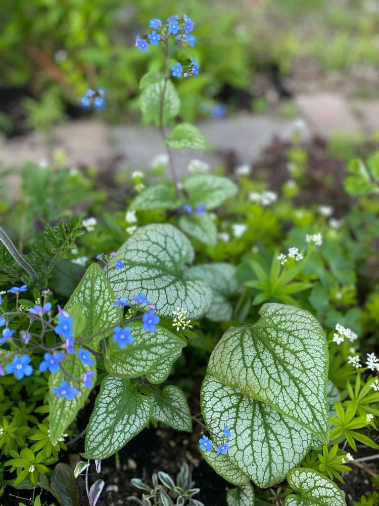 親株は平板の隙間から大きくなっている、根性ブルンネラ😅