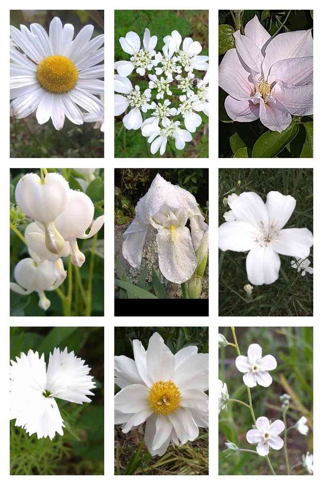 GS始めて5年目のこてきちガーデン、まだまだだけど、白い花を探してみたらこんなに咲いてた🌱🤍🤍🤍🤍🤍🌱