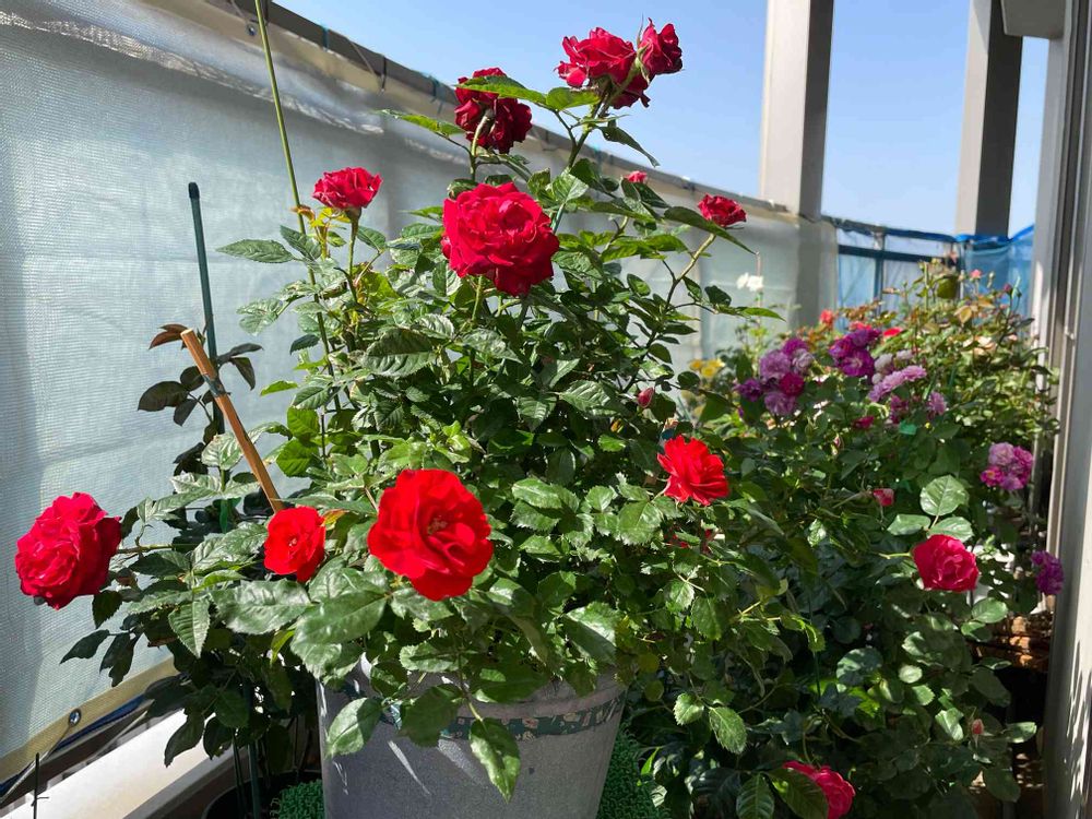 強風のベランダで、バラは負けない‼️嬉しくってバラ鉢だらけになっちゃいました💕品種不明のバラばかりなので鉢に名前をつけてます✌️ 2020年4月からバラ生活が始まり、GSは5月末から参加しました。みなさんからいろんな植物の話が見聞き&おしゃべりできてとっても楽しいです。ありがとぉです💕どうぞよろしくです。