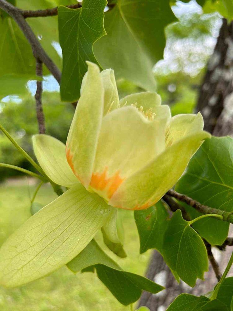 ユリノキ、こんなにアップで見るのは初めてです🎶 蕊も見えますね👍