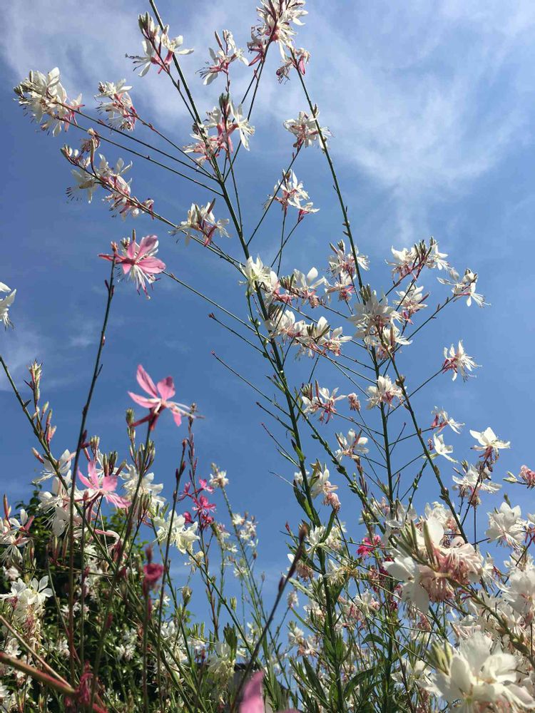 青空に白とピンクのガウラが綺麗ですネ〜💗