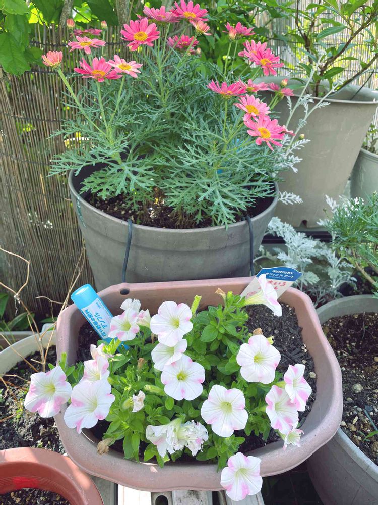 小さな庭,マーガレット シンプリーコーラル ( ),サフィニアアート ももいろハート ( )の投稿画像