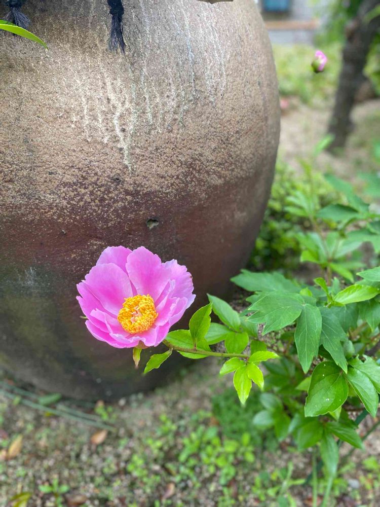 今朝、地植えの牡丹の脇から山芍薬さん開花。
