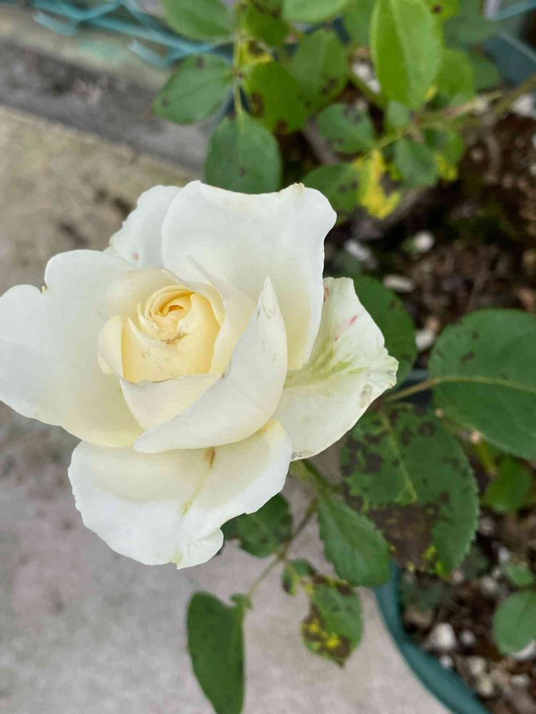 娘が数年前の母の日にくれたバラです。それまで私は、白いバラは興味がありませんでした。でも咲いたらなんてきれいなんでしょう😃白が一番美しい色かしら、と見直しました☺️