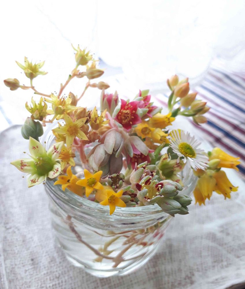 多肉の花を🌼✂️して挿して飾ってたら種類も増えて可愛くなったので🧡🤳🌼