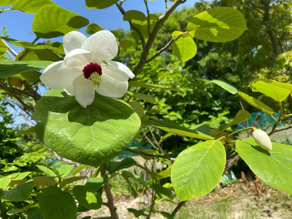 白い花びらとおしべ?の赤い部分のコントラストが素敵🤍❤️。モクレンのような香りがするのですか?