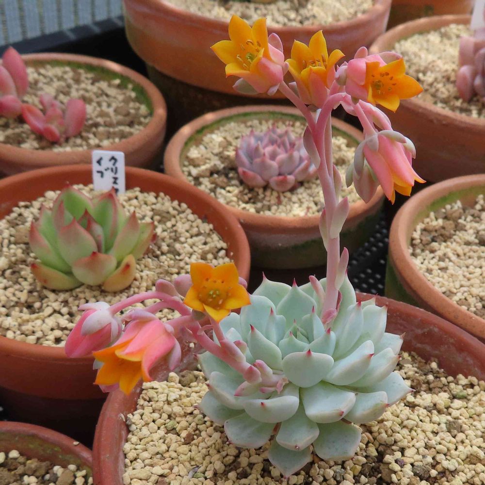 最近は株の体力のためにエケベリアの花芽はカットしているけど,バランス良く咲いていたので思わず残してしまった野バラの精の花。