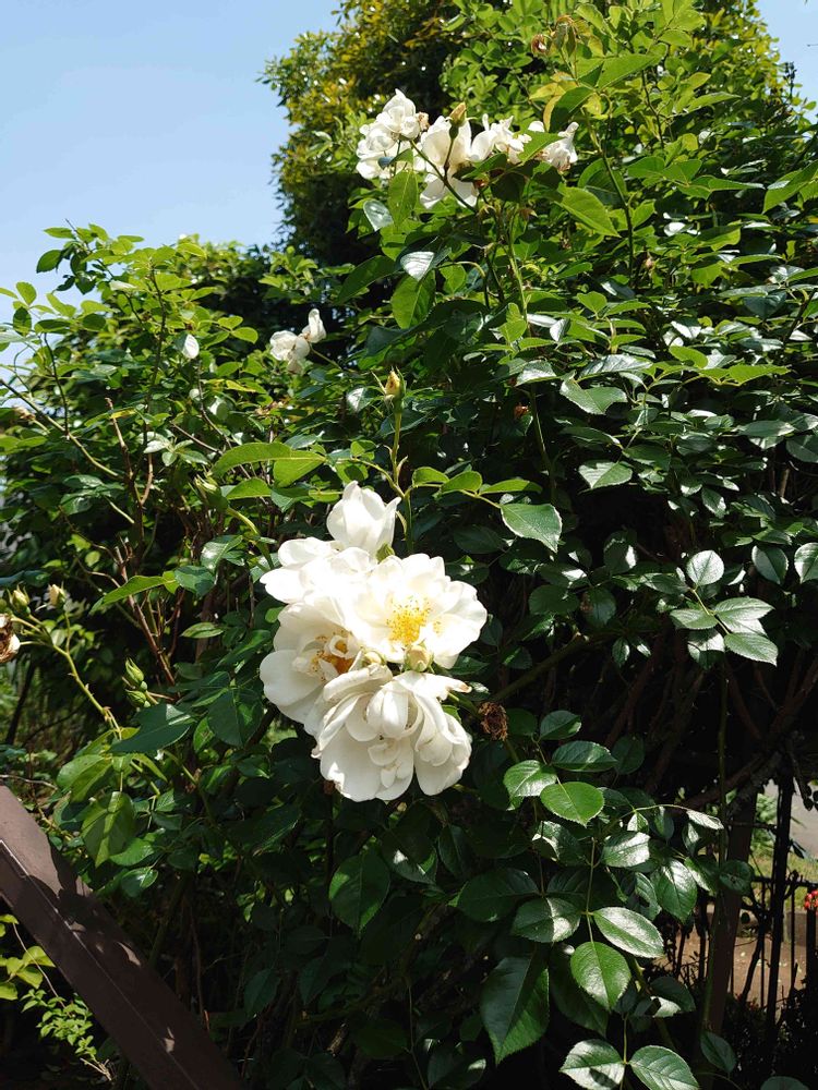 一応、薔薇のアーチらしきものがあるのですが、そこにまばらに咲く白い薔薇。