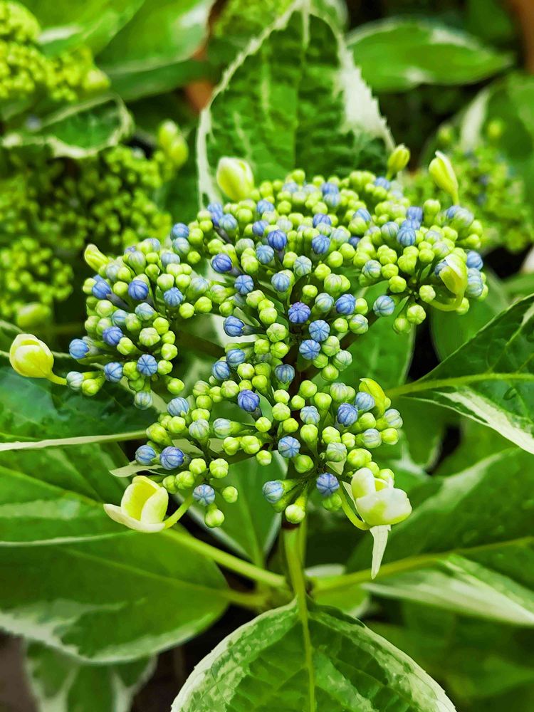 家のガクアジサイはどうかな、とはちみつ☆さんのpicを見て、気になって見てきましたが、小さな花が開き始めたのに、蕾はまだ色づいてはいませんでした😉