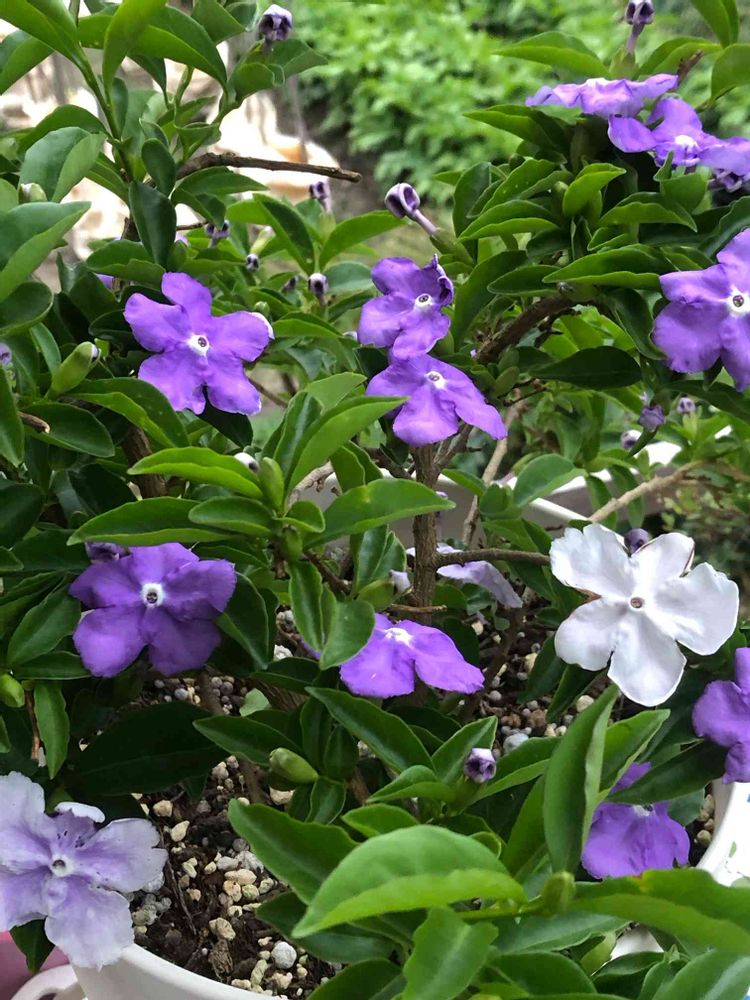 週末買い物に行くスーパーの近くにニオイバンマツリが植えてあって綺麗に剪定され大きな木にビッシリとお花が咲いているのが車の窓から見えて感動しました💜🤍