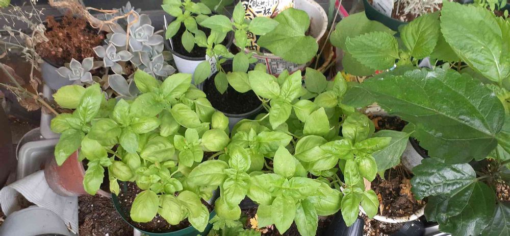 日光浴で昼間出してるバジル2鉢とその他の方々。ライムバジルはまとめて植えてあったのを大体2株ずつに分解して個別に分けて植えて。成長に合わせて鉢を変える予定。去年、婆ちゃんに分けてもらった大葉がAUTOまきで種を蒔き散らかしてくれていたお陰でアチコチから大葉の芽が出て株ができて一部は料理に使いました。去年、大葉とバジルと害虫(イモムシみたいなやつ)にやられているので、今年は害虫対策したいとは思う。手で見つけ次第捕殺するのも楽じゃないし・・・・・。