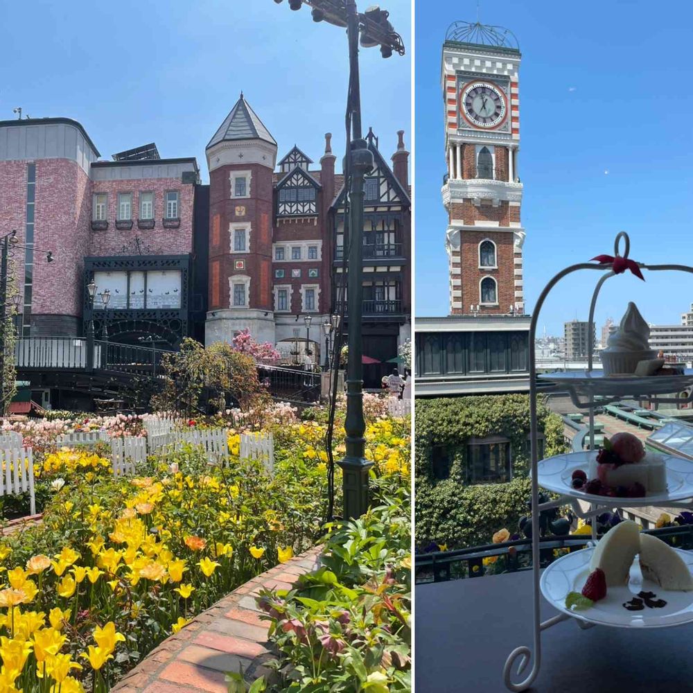 からくり時計を眺めながらの、アフタヌーンティー🍰☕️。10年ほど前に行った時を思い出しながら😋