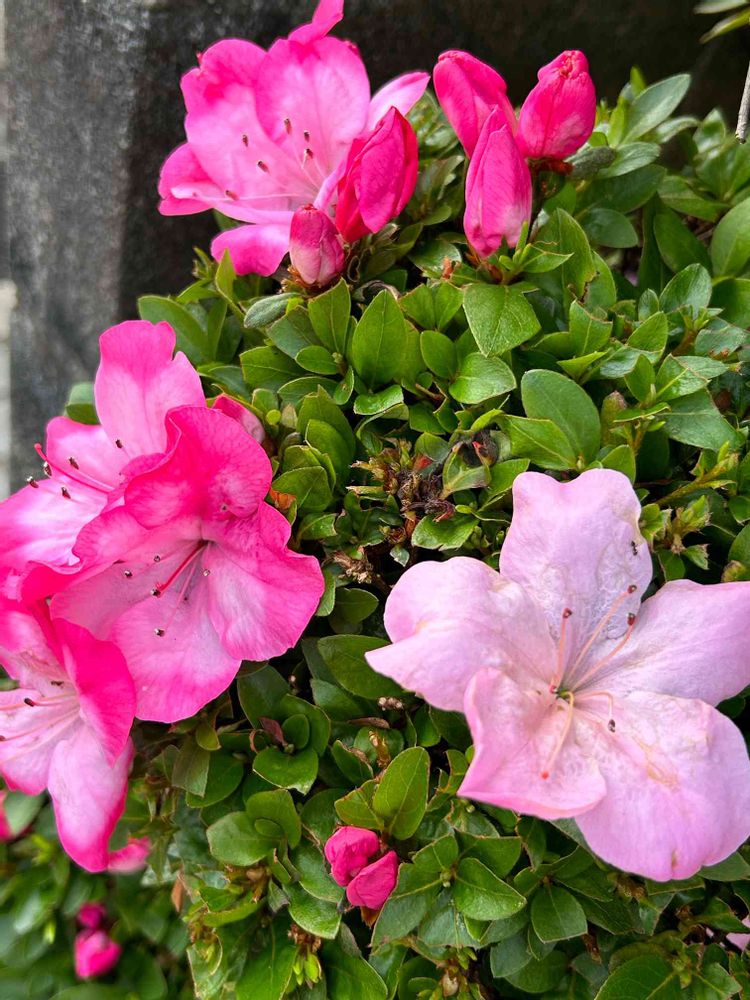 アカメガシの生垣の下に、三、四年ぶりに咲いてくれたサツキですが、華やかな色でご近所さんにも愛でて貰ってます🤗🌿💕