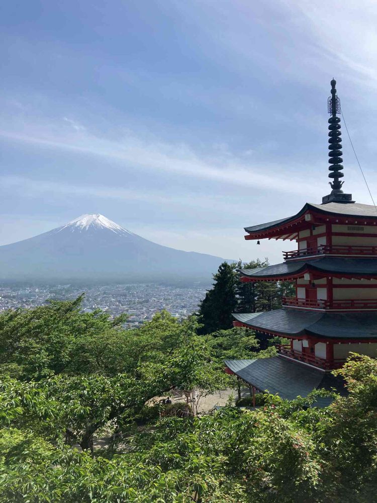 あの日は朝からカチカチ山からの絶景、芝桜祭りの見頃過ぎてましたが、素敵な景色、大石公園のネモフィラ越しの富士山🗻の後に新倉山浅間神社に行きました。