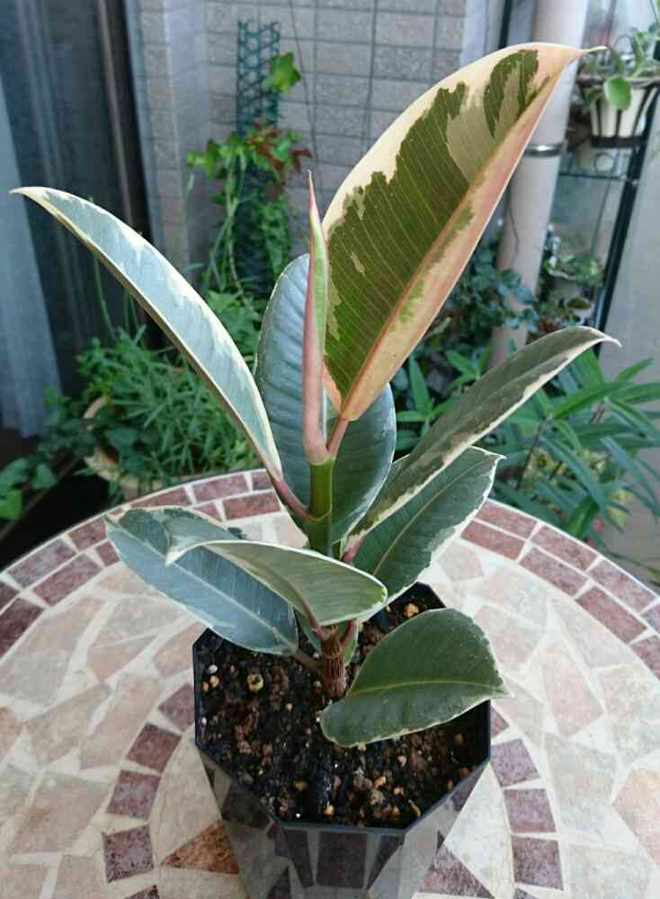 100均出身の斑入りゴムの木、8ヶ月でずいぶん立派になってきました。