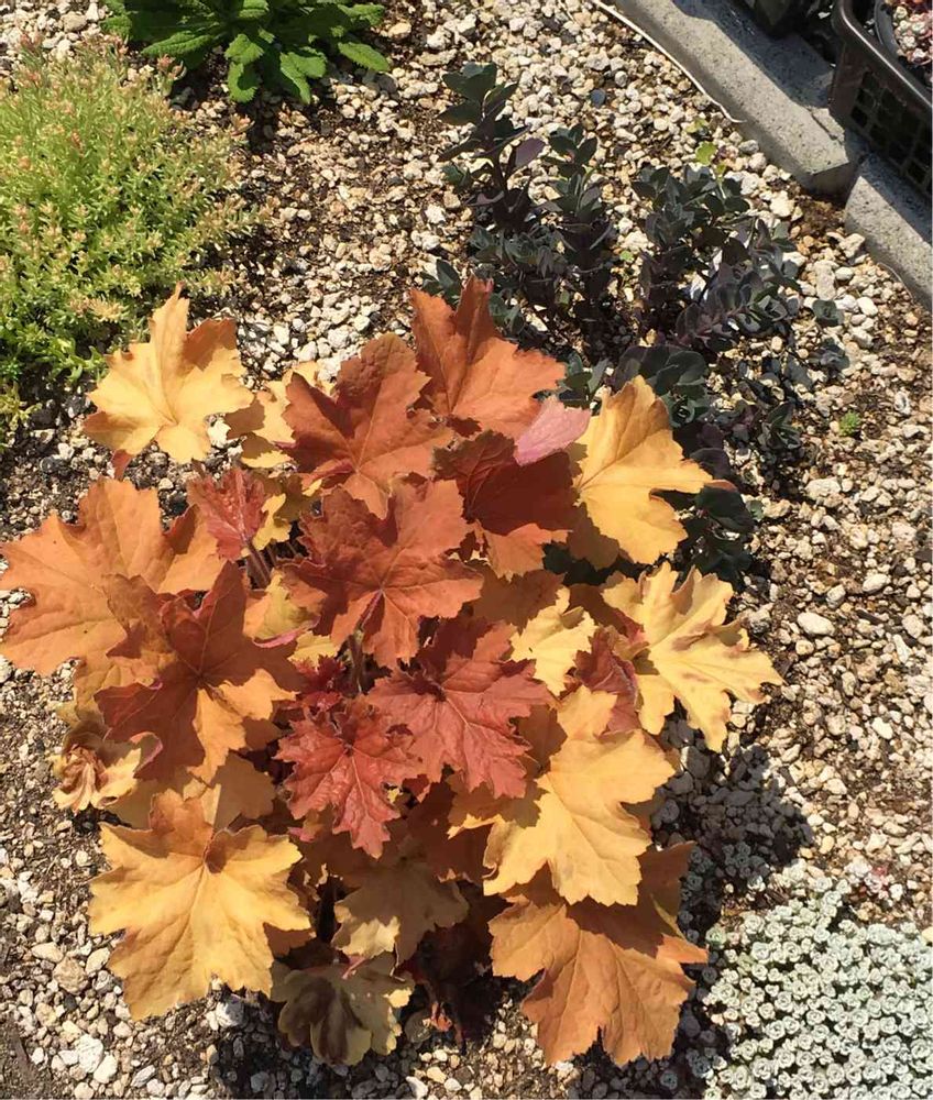 昔からツボサンゴが好きだったですが ホームセンターで色んな色合いのヒューケラ見つけて あれもこれもと求めて植えました😆🎶