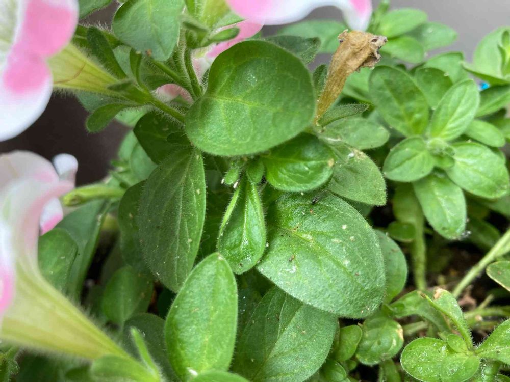 ペチュニア類は湿気が苦手なので、下葉が繁ってきたらある程度切ったりして、根元からの風通しを良くしたりしてます。