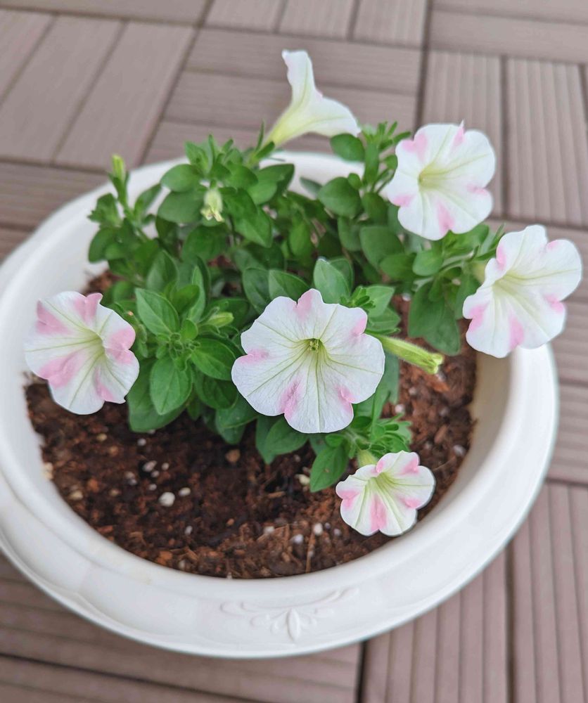 私はお花屋さんで花が終わったペチュニアを¥30で購入🥰何色が咲くのかもわからずでしたが、数日前から白が🤍咲き始めました〜🎶
