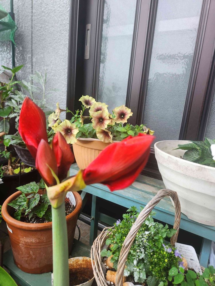 雨降りは、お花を眺めて、ぼーっと、したい。アマリリスに、パワーを、チャージしてもらうしかない。