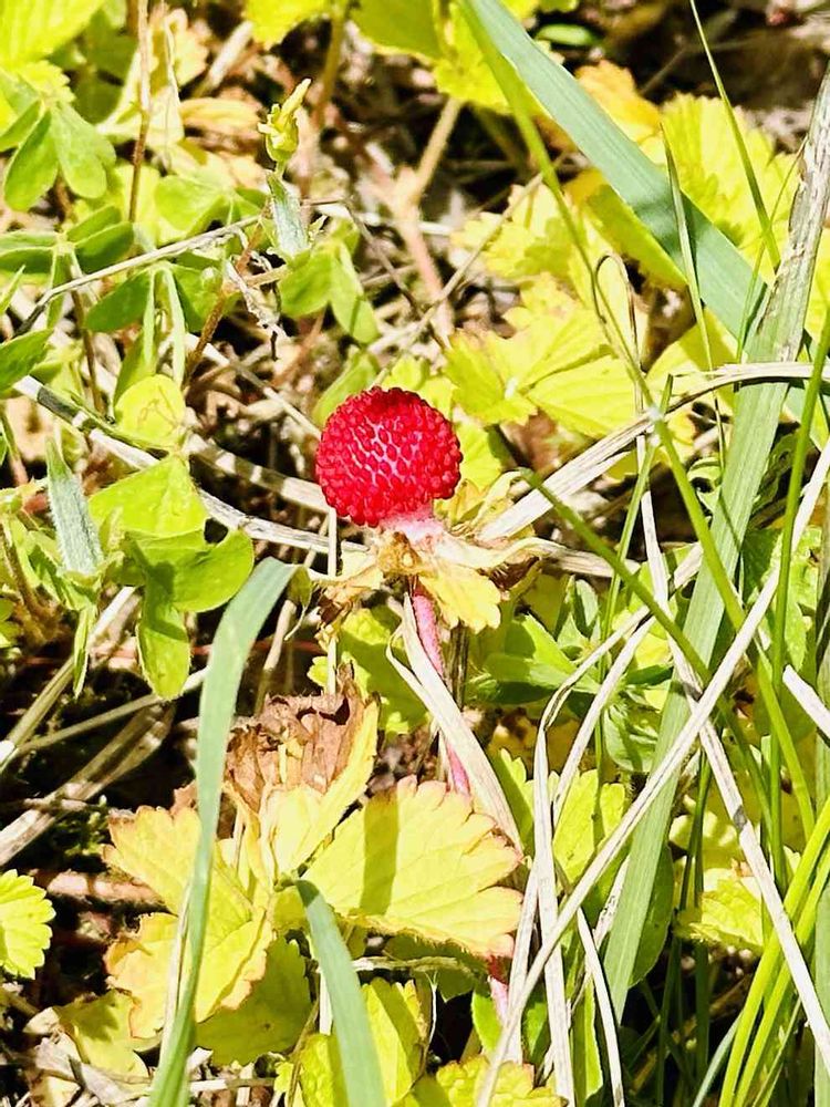 湿原への農道脇で真っ赤な実を付けたイチゴが彼方此方で見られる様になりました。