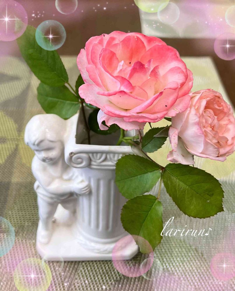 白いエンジェルの花器もバラちゃんにピッタリです~~🥰🎶🎶