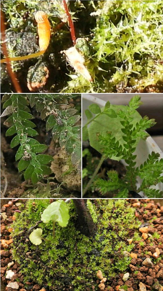 上段のコケはシノブゴケ科のノミハニワゴケかコメバキヌゴケかもとアドバイス頂きました😃