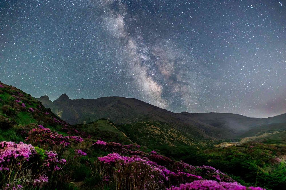 ミヤマキリシマが満開で、お休みが取れて、満天の星空🌌で、は奇跡の一枚ですね😃✨✨✨