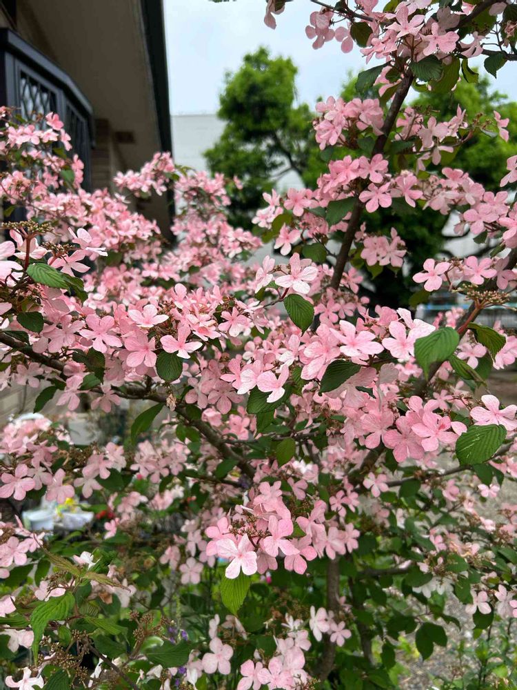 4/30に白から🤍ピンク🩷へのグラデーションの写真を🤳投稿しましたが、今は全てピンク色になり庭の中でもひときわ目をひく存在になってます😊