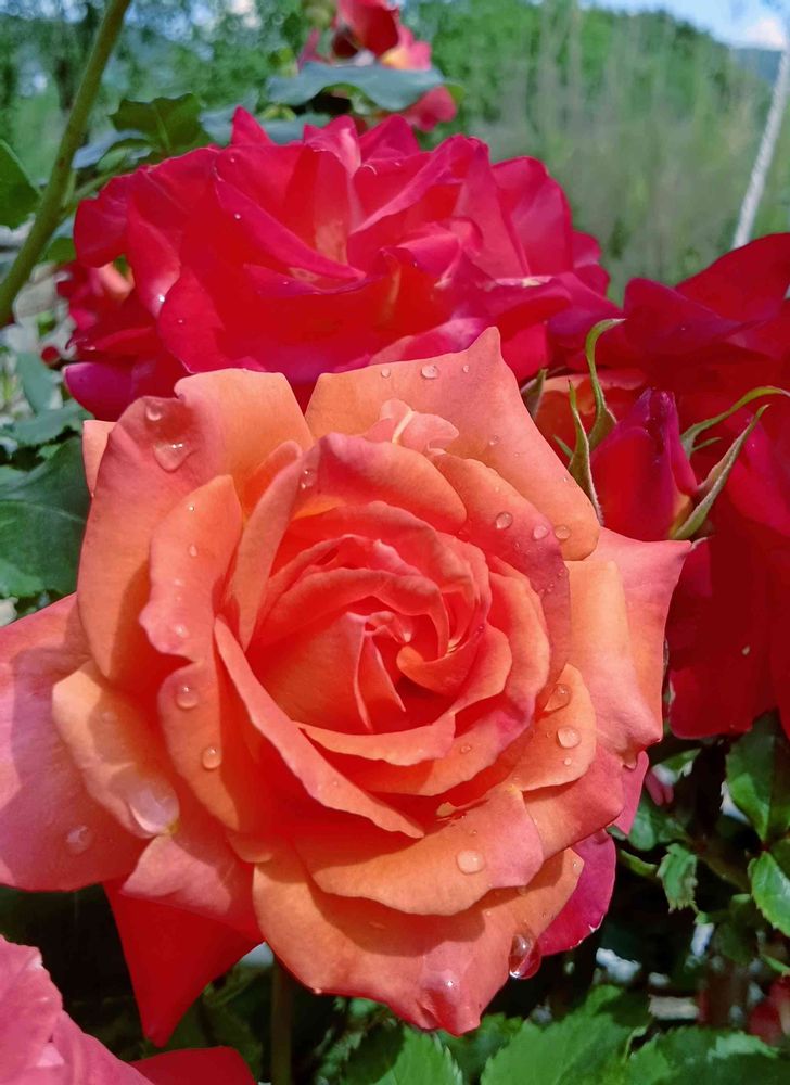 さん美しいバラですね。雨のしずくがついて素適な写真を見せて頂き有難うございます😆💕💕