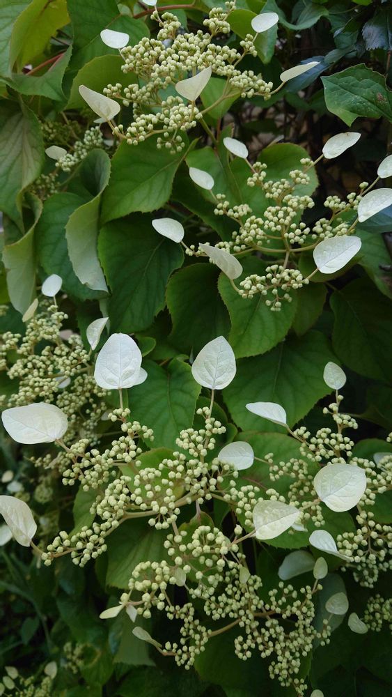 ツルアジサイ‼️ずーっと前からあるのですが全く咲きません。こんなステキなお花なんですね〜😍