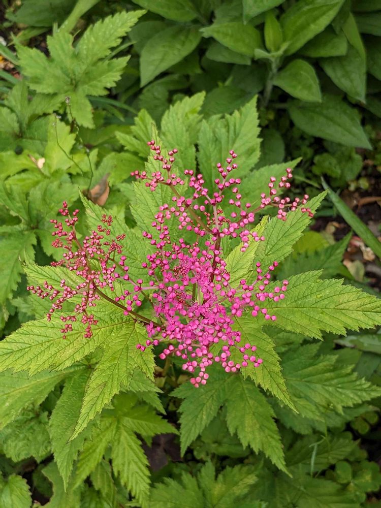 花が「シモツケ似」で、葉が🍁モミジ葉形のギザギザ