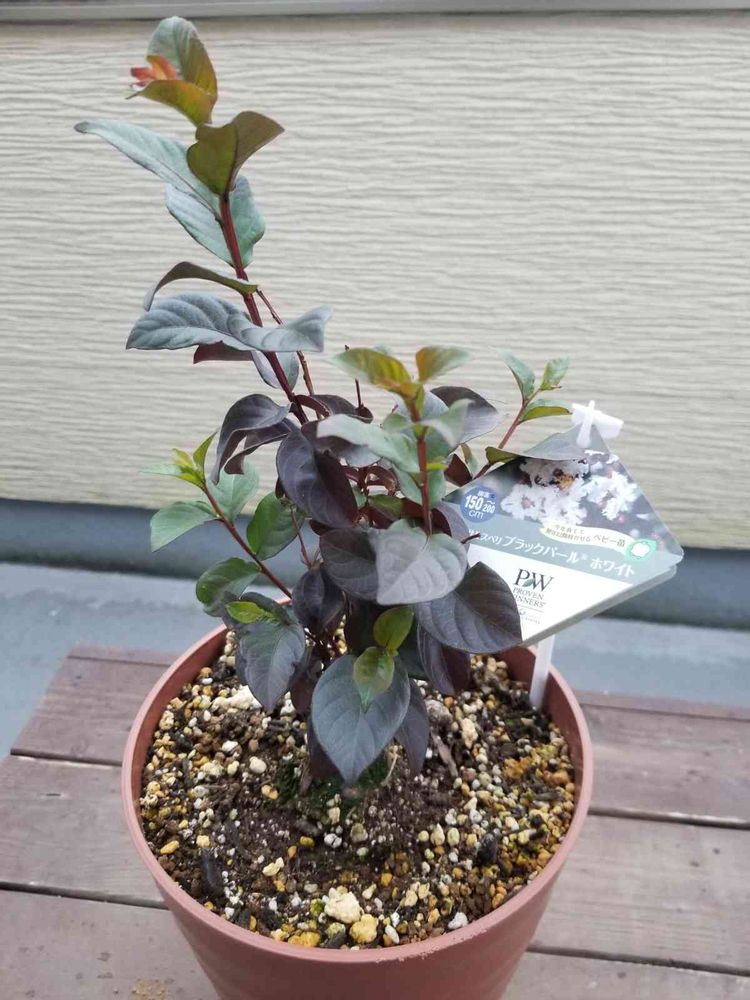 黒葉のサルスベリと白色の花色とのコントラストを見るのが楽しみです😃