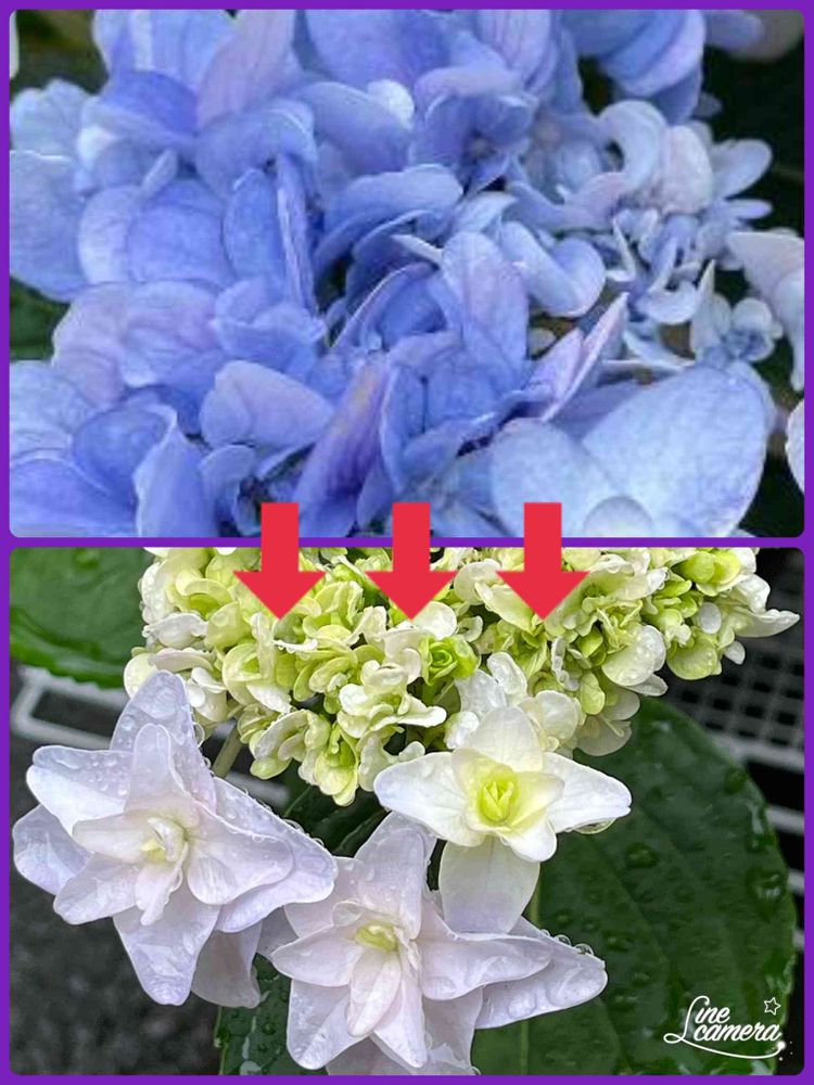 え、家のアジサイは変わるのかな~🙄 土かえたけど、何性かな?