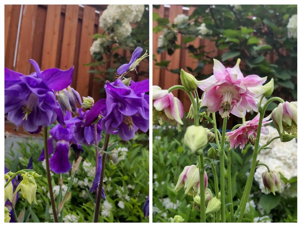 西洋オダマキの⇐ブルーバローと⇒ノラバローが咲き始めました🌸