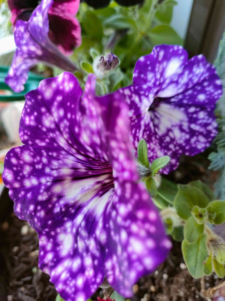 玄関のペチュニアナイトスカイさんで〜す。🥰