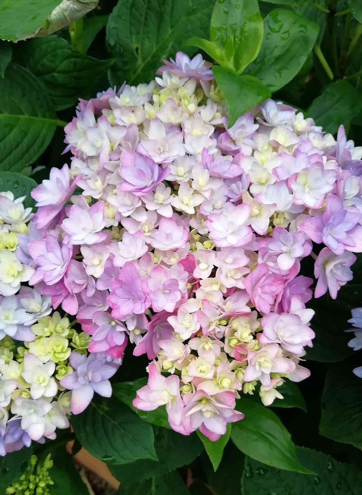 色々な色が混じった華やかなアジサイです😌💓