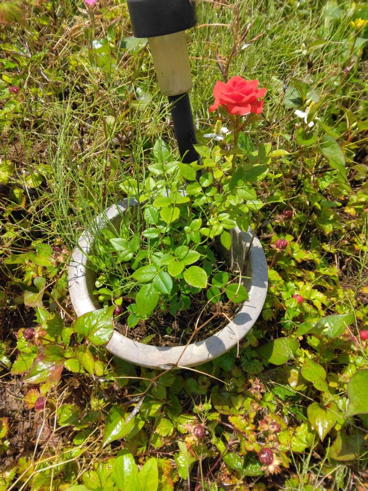 雑草の中、ミニバラ一輪咲きました。