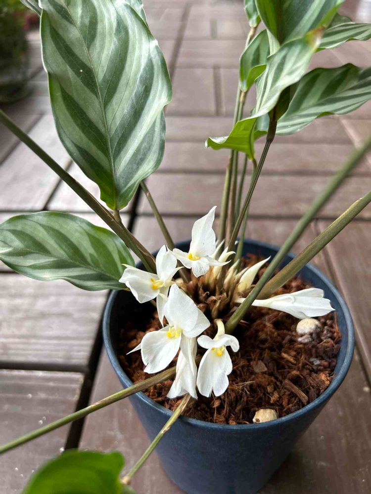 ダイソーでよく見るこのカラテアこんな花が咲くんですね💡地味ですがキレイですね〜