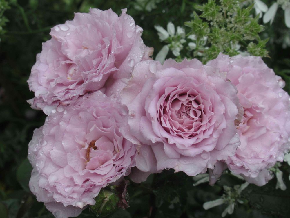 朝は、昨日の雨で全ての草花がびっしょりでした。