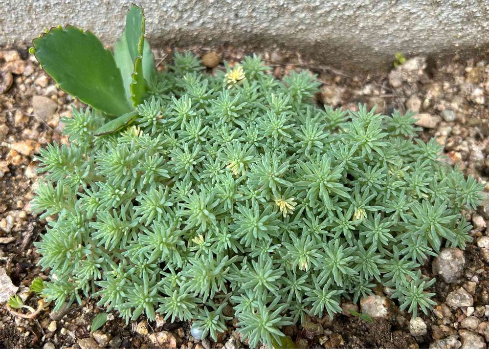 パラパラと蒔いていたセダム(名前忘れた)がモリモリと増えて、左上には増えすぎて困り、てきとーにほり投げた子宝草の赤ちゃんが根付いて成長してきてます。