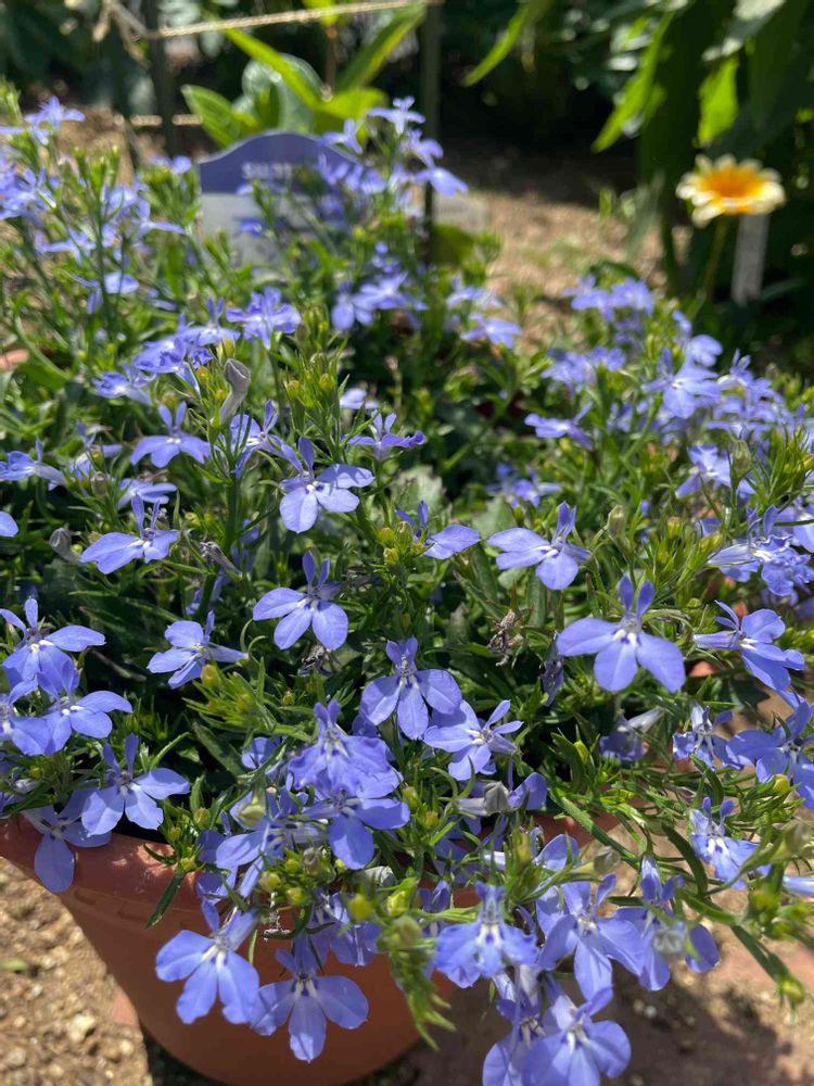 スカイブルーの小花たちが、ヒラヒラ舞いながら鉢から溢れ出す!アズーロコンパクトの成長力♪