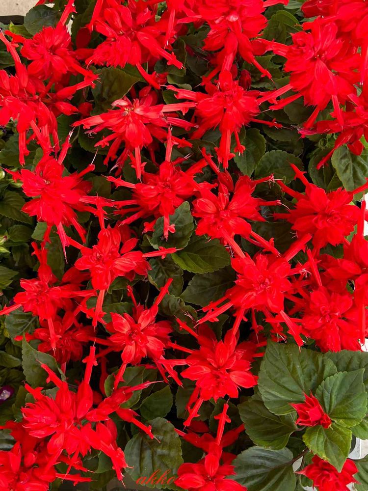 真っ赤な夏の花、サルビアに元気もらって、今週もがんばりましょう‼️