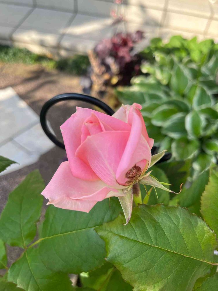ヨトウムシにガッツリ食べられていたピンクのミニバラ🎀💕💓💗