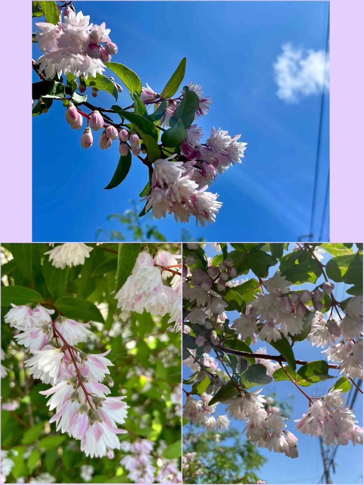 気持ちの良い空の下 サイクリング良かったわね〜 ピンクのサラサウツギがきれい!!🚲