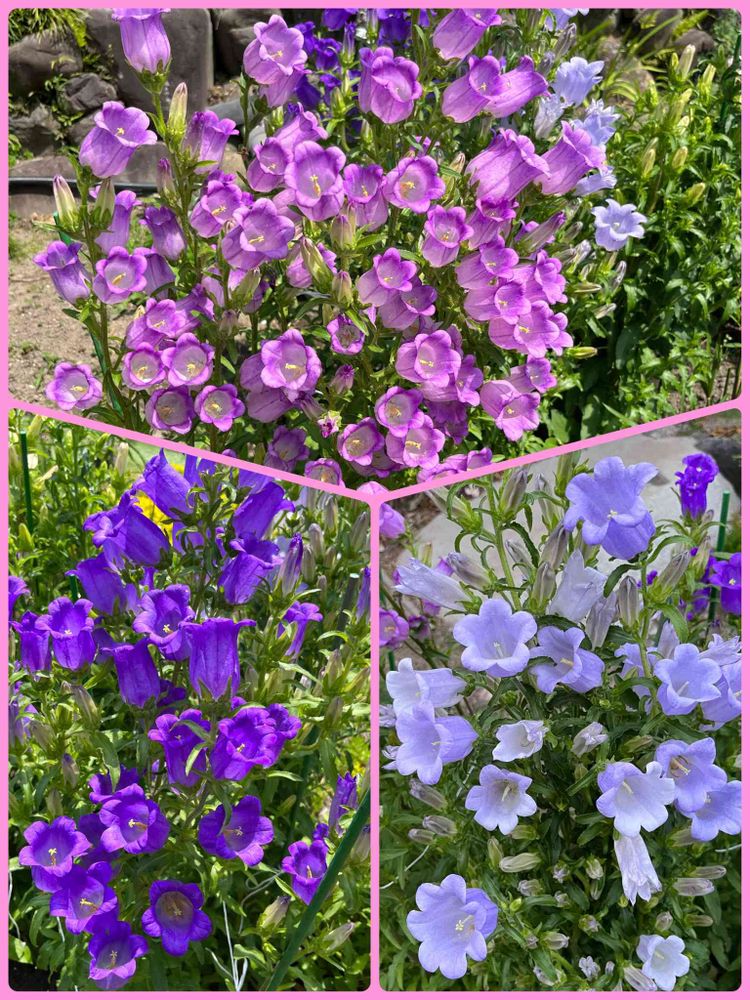 カンパニュラ、家の庭でも3色今が盛りと咲いてます🥰
