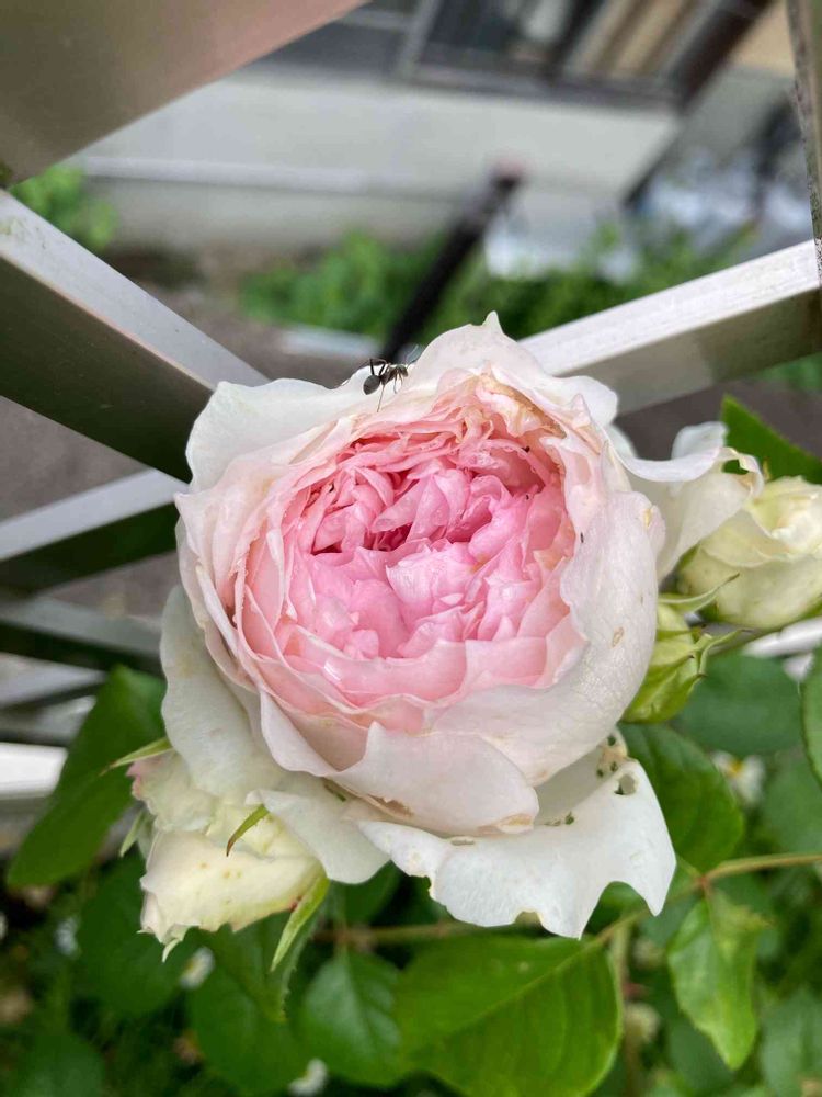 よく咲くつる薔薇とのことでお迎えしたフランシスさん💕花もちも良いらしく、期待の子です。が、どうやら虫に好かれやすそう🪲💦どうしても汚れやすい印象。