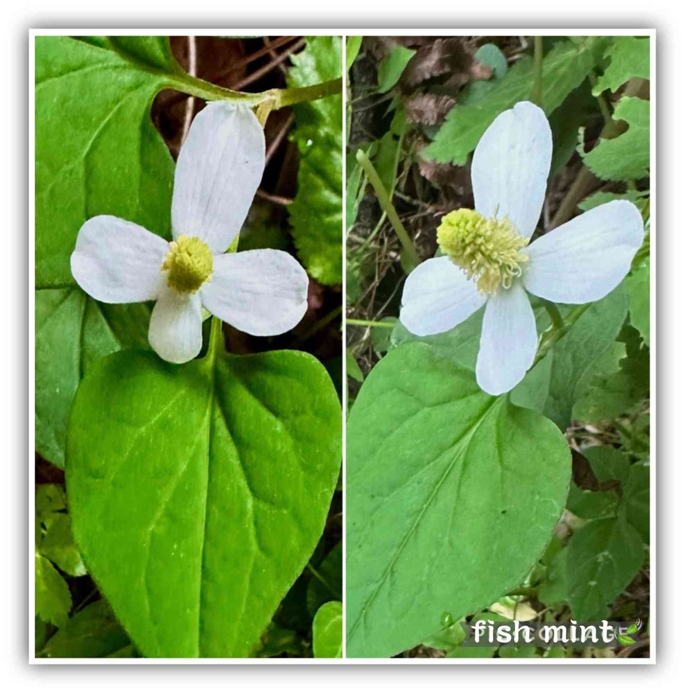 📝万葉の中庭の片隅でひっそりと咲いていた「どくだみ草」の花が満開になっていたのでパチリ撮ってみました🐶