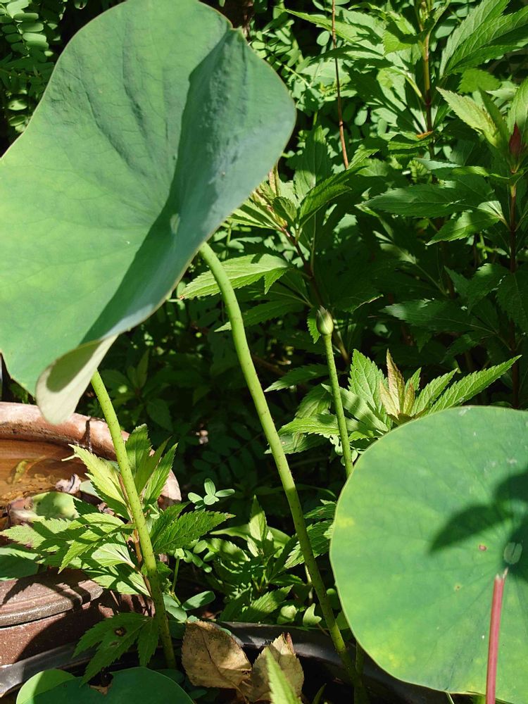 茶碗蓮に小さな蕾が一つだけ出てきました